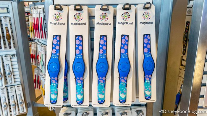 We spotted a MagicBand at Pin Traders with a Monsters, Inc. design. One side of the band has the lovable monster Sulley, while the other features his signature pattern.