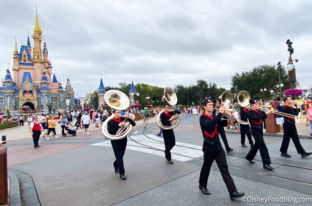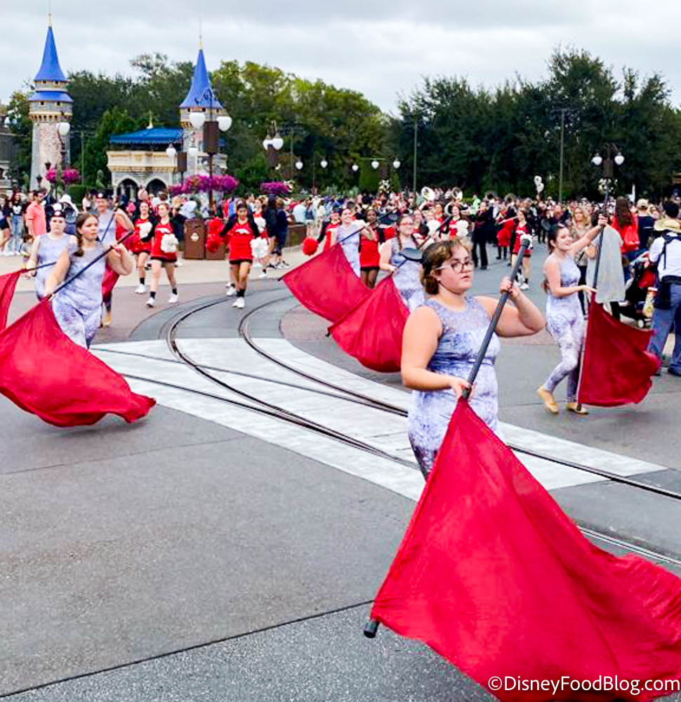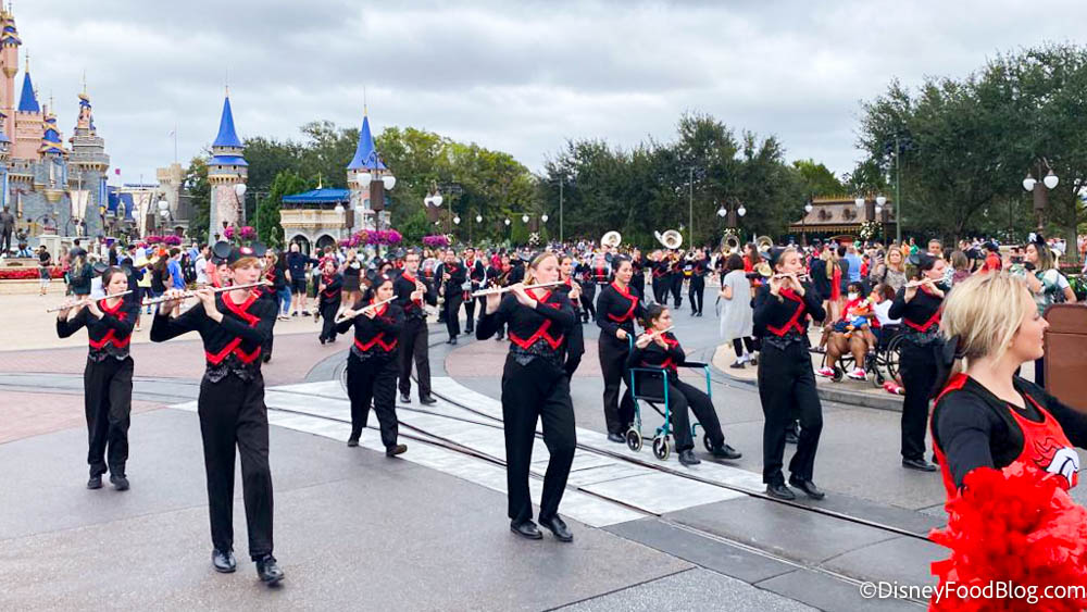 We also saw a high school marching band coming down Main Street, U.S.A..