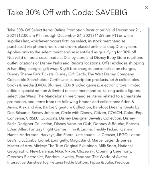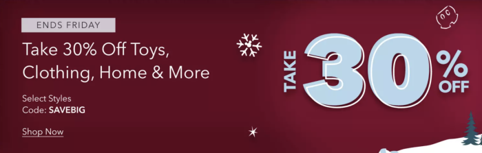 Now for a limited time, you can save 30% off qualifying toys, clothing, home items, and more on shopDisney with the code SAVEBIG!