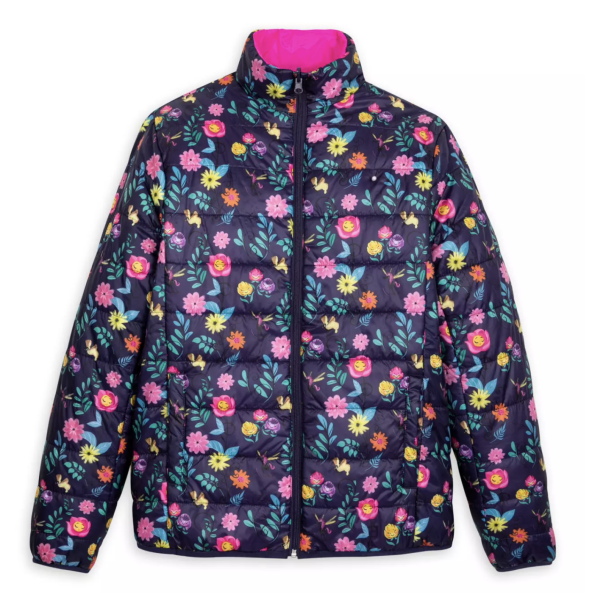 This Alice in Wonderland Puffy Jacket for adults is reversible! While one side is a bright pink with an embroidered White Rabbit on the chest…