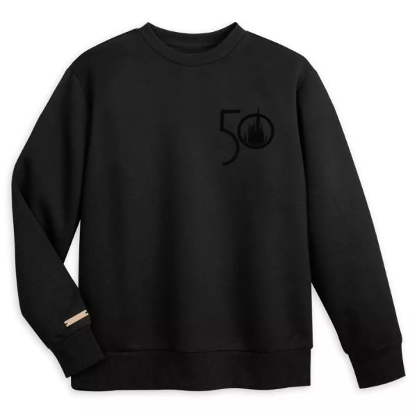 You’ll want to just cuddle up in this Disney World 50th Anniversary Sweater for Adults. This black sweater features a shimmering tinsel fabric with the 50th Anniversary logo on the chest.