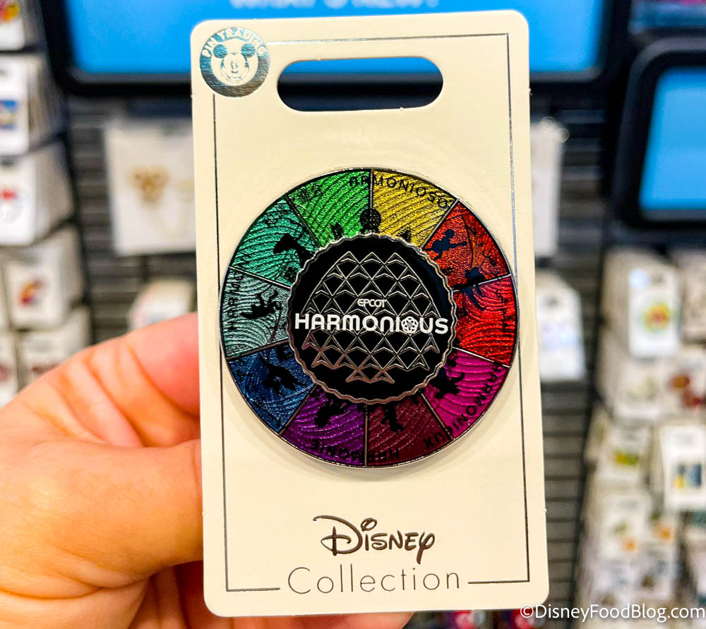 At Pin Traders (located near Spaceship Earth), we spotted a new pin that’s themed after the Harmonious nighttime fireworks show in EPCOT!