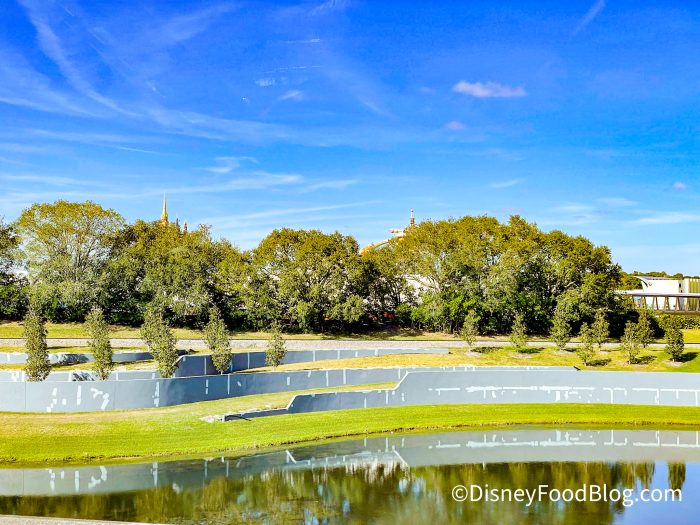 And, it’s over to EPCOT we go to get a birds-eye view of all the construction taking place in the center of what is now known as World Celebration (or the former Future World). We were able to check in on the work being done where the new walk-through attraction, Moana: Journey of Water, will be located and it looks like they’re making progress! We could see that new walls were going up in a somewhat circular shape…