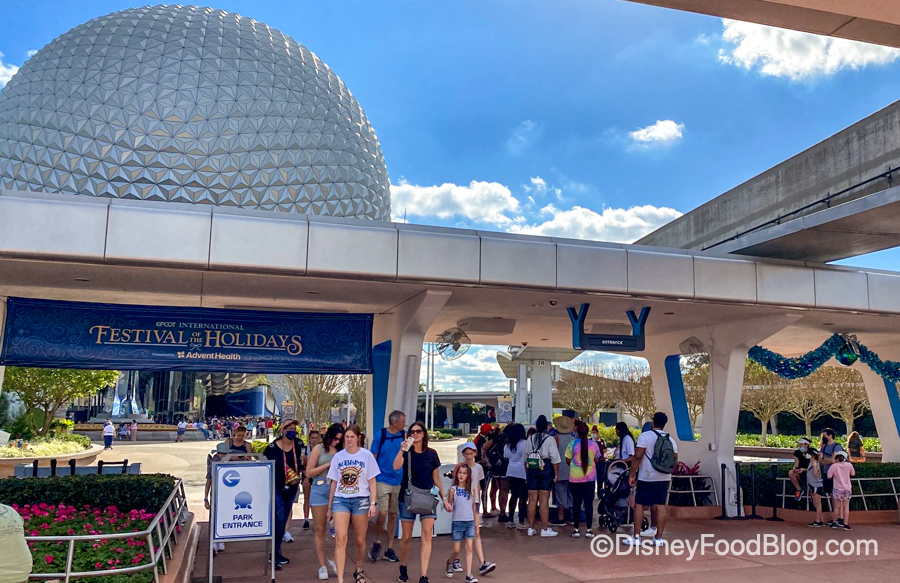 Over at EPCOT, things were looking VERY busy at the entrance as well.