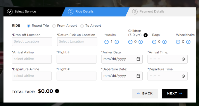 …input the required information about your drop-off and pick-up location, your flight details, and your party. Then you’ll make the payment required.