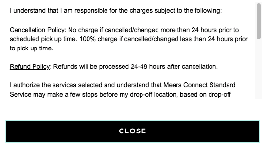 For Mears connect, there is no charge if cancelled or changed more than 24 hours before pick-up time. There is a 100% charge if canceled or changed less than 24 hours before pick-up time.