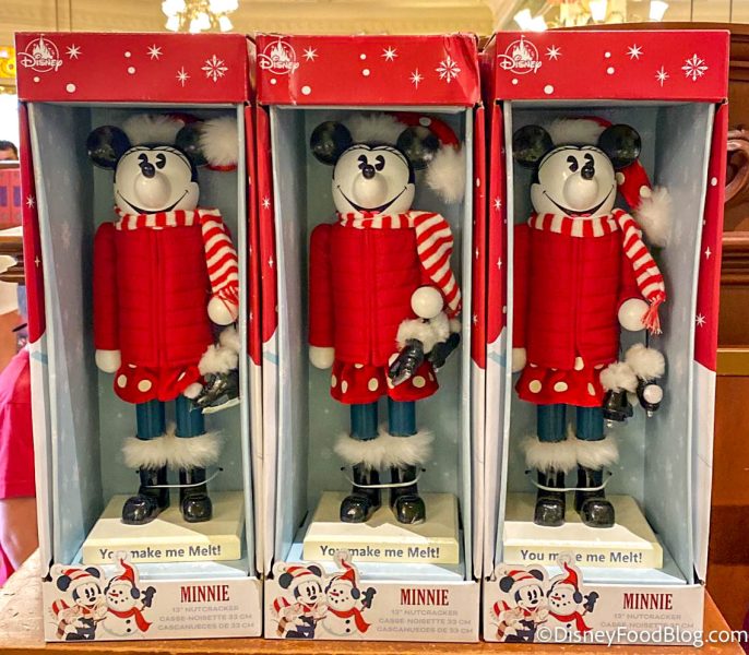 In the Emporium we spotted Mickey and Minnie Nutcrackers for $59.99 each! The Minnie Nutcrackers are outfitted in red…
