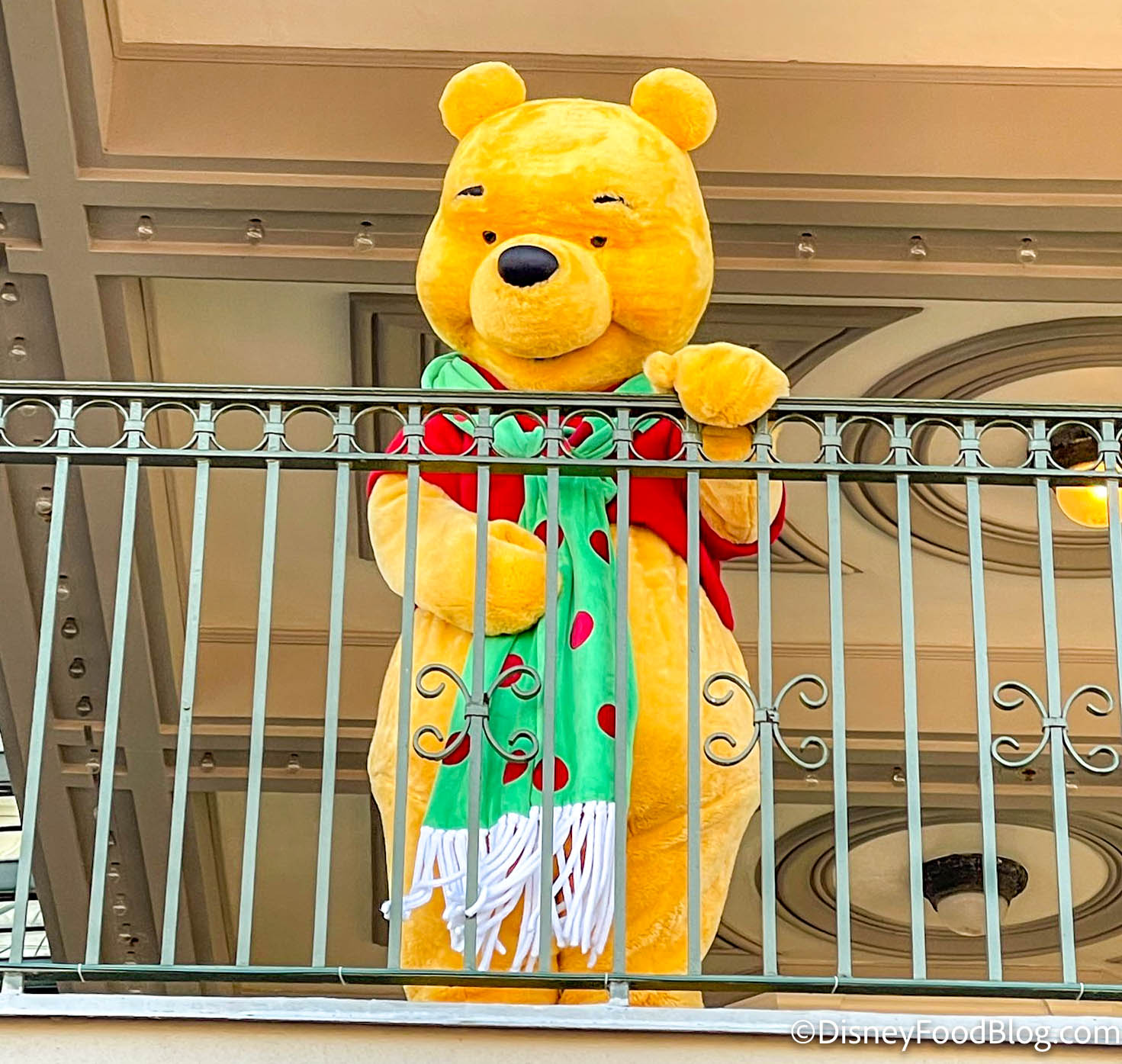 During our time in the park, we also got to wave to our friends from the Hundred Acre Wood in their holiday outfits, like Winnie the Pooh…