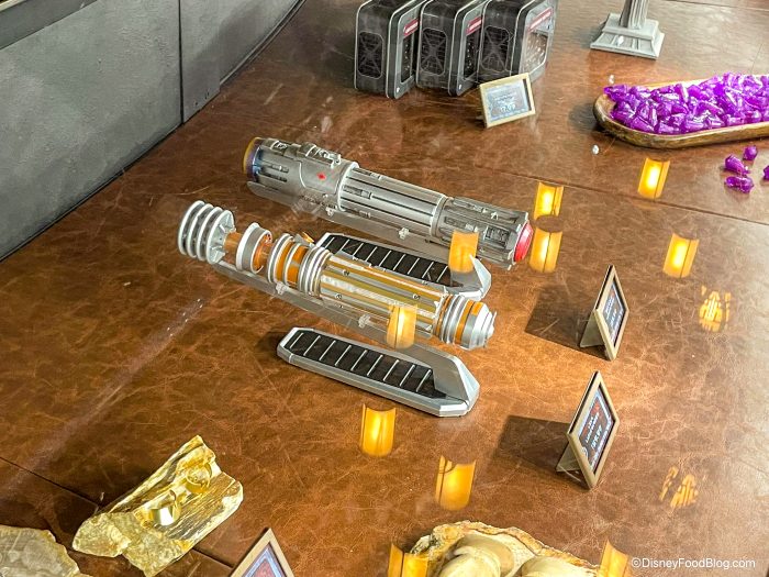 Last time, we reported the mass disappearance of signature lightsabers (those are the fancy ones in the glass case) at Dok Ondar’s! Today, we’re happy to tell you that Ben Solo (A.K.A. Kylo Ren) and Princess Leia’s signature sabers are some of the first to return in Galaxy’s Edge. But they might sell out quickly.