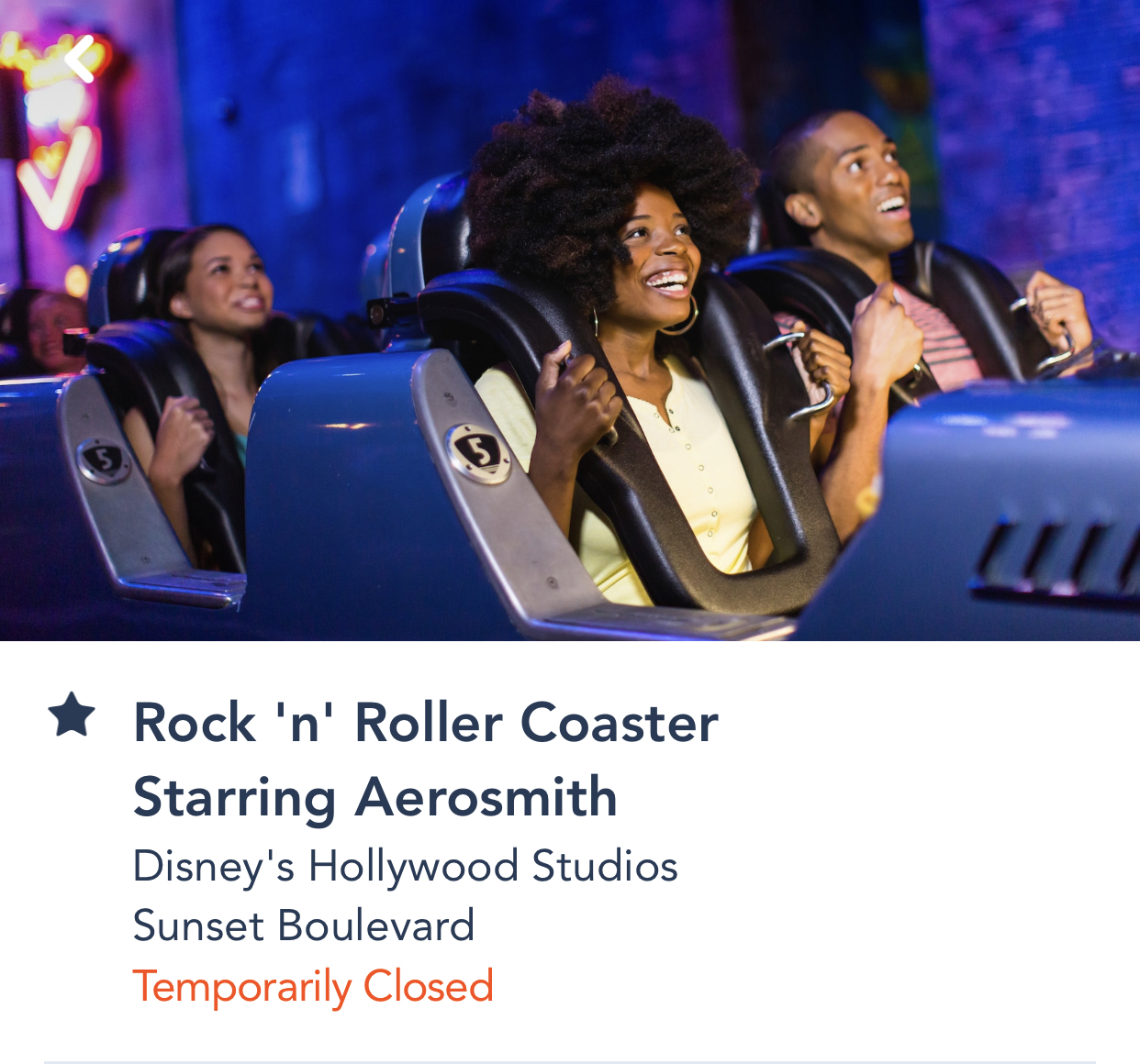 And it looks like Rock ‘n’ Roller Coaster is once again temporarily closed in Hollywood Studios today. This has not been the best month for the roller coaster, considering it also closed in early December due to smoke.