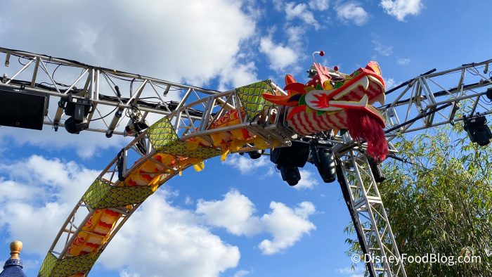 Over in World Showcase, we noticed a new Dragon set piece in place for New Year’s Eve in the China Pavilion.