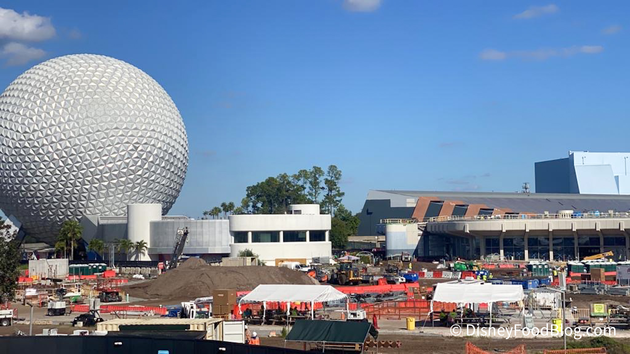 We also passed by the future home of Guardians of the Galaxy: Cosmic Rewind as we made our way through EPCOT, and we noticed a new coat of paint on one side of the show building!