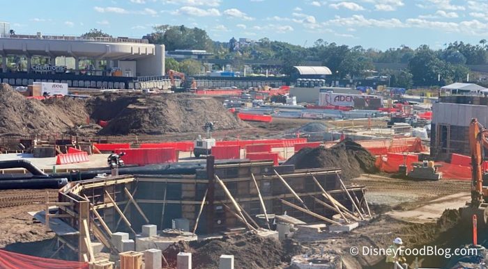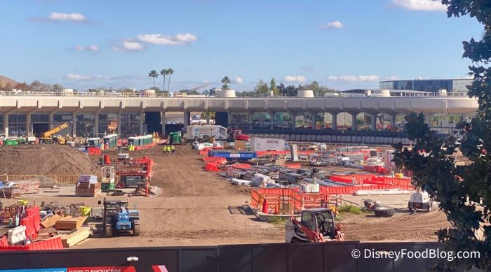 We hopped on the Monorail to head into EPCOT, and from up above, you can get a pretty good look at how the construction is coming along in the front half of the park! Those construction walls have been up for some time now, and by all accounts…
