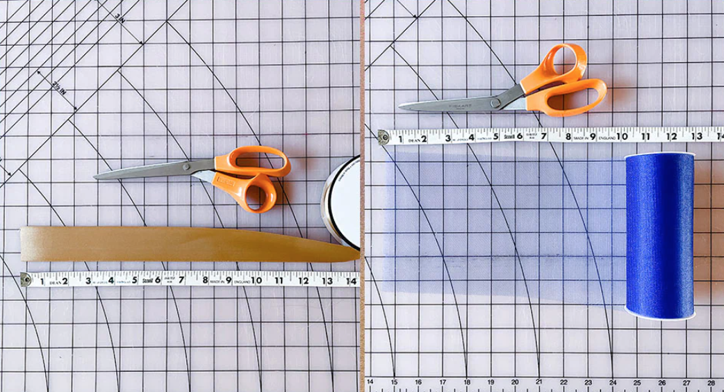 - Taking the thick gold ribbon, measure out the length of your waist PLUS 40-50 inches (so you can tie your skirt in the back!). Set this aside.