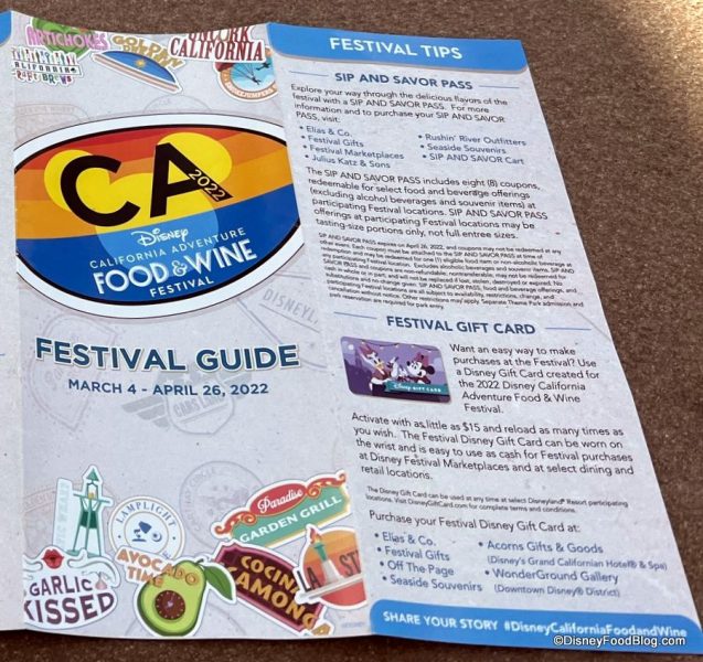 2022 Disney California Adventure Food and Wine Festival Booth and Menu Index