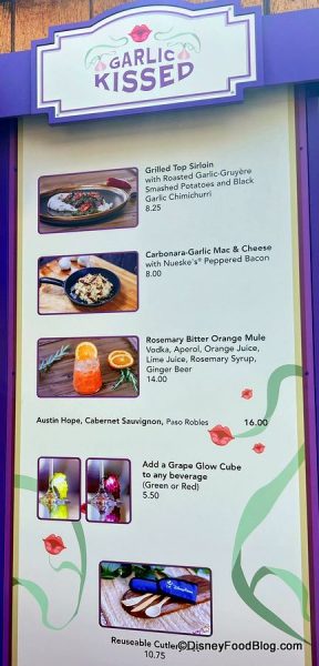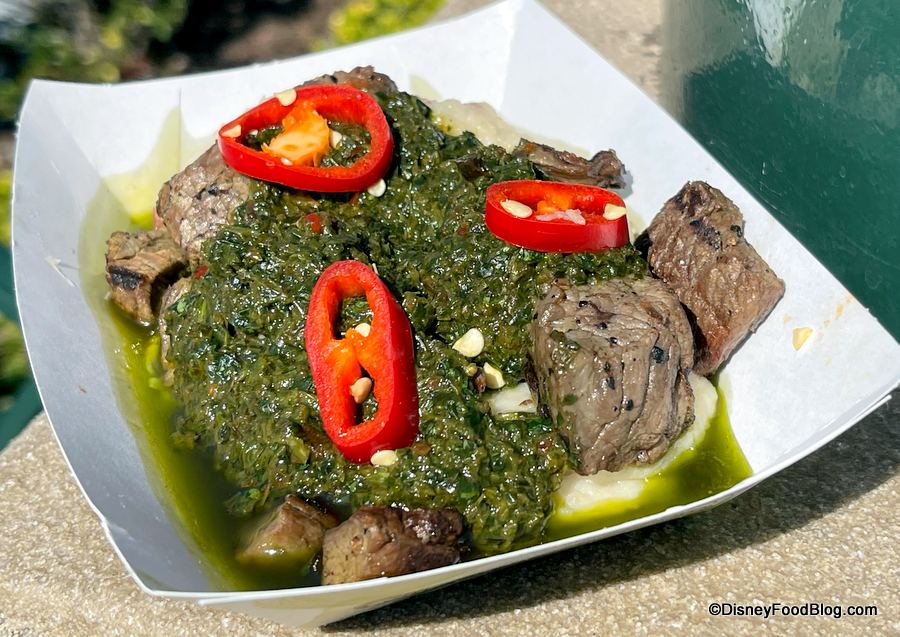 - Grilled Top Sirloin with roasted garlic-Gruyère smashed potatoes and black garlic chimichurri (available with Sip & Savor Pass) (NEW) — $8.25