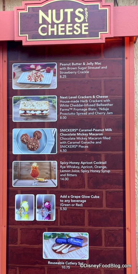 - SNICKERS Caramel-Peanut Milk Chocolate Mickey Macaron: Chocolate Mickey macaron filled with caramel ganache and SNICKERS pieces (available with Sip & Savor Pass) — $6.50