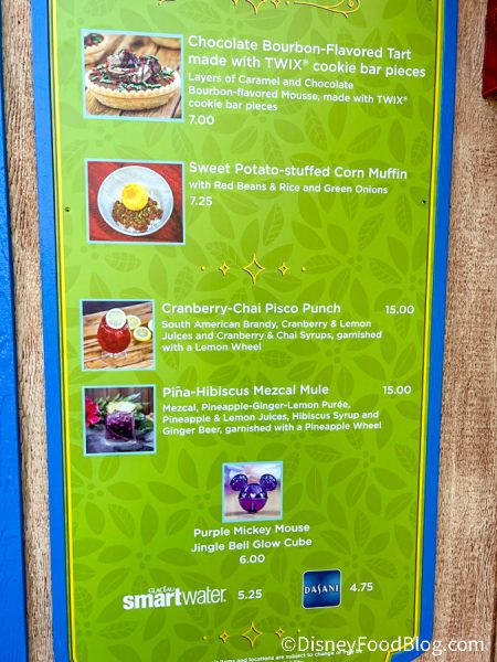 - Cranberry-Chai Pisco Punch: South American Brandy, cranberry, and lemon juices with cranberry and chai syrups garnished with a lemon wheel – $15.00