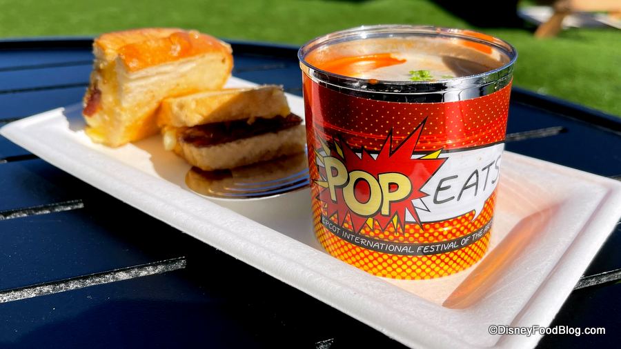 Tomato Soup with Bacon Apple and Brie Grilled Cheese 2022 epcot festival of the arts pop eats food studio booth farts (4) By Wendy Leave a Comment