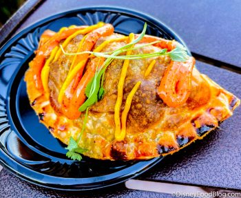 2022 wdw epcot festival of the arts opening day vibrante and vivido encanto cocina booth House-made Chorizo and Potato Empanada with turmeric aïoli and annatto aïoli-2 By Jessica Hogan Leave a Comment