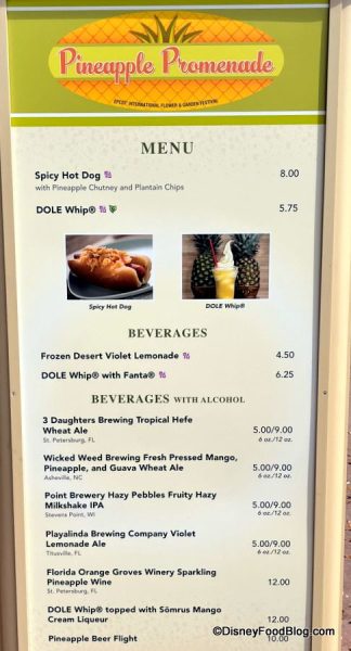 This is the place to find the Pineapple Soft Serve (aka Dole Whip) and the Spicy Hot Dog! The Violet Lemonade is also a crowd favorite.