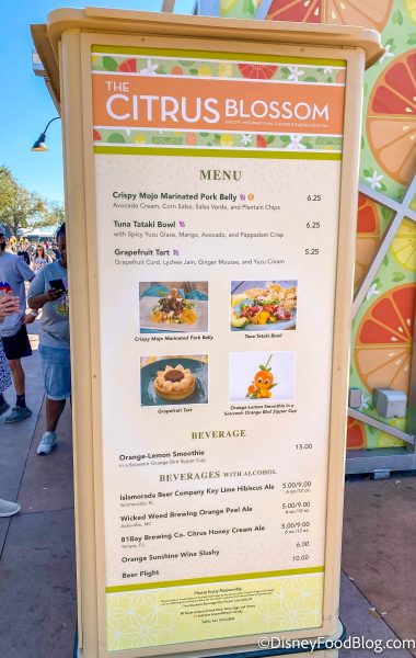 Citrus Blossom returns again for 2022! At The Citrus Blossom your taste buds will delight in the subtleties of lemon, orange, and lime. Find this bright booth on World Showcase Plaza.