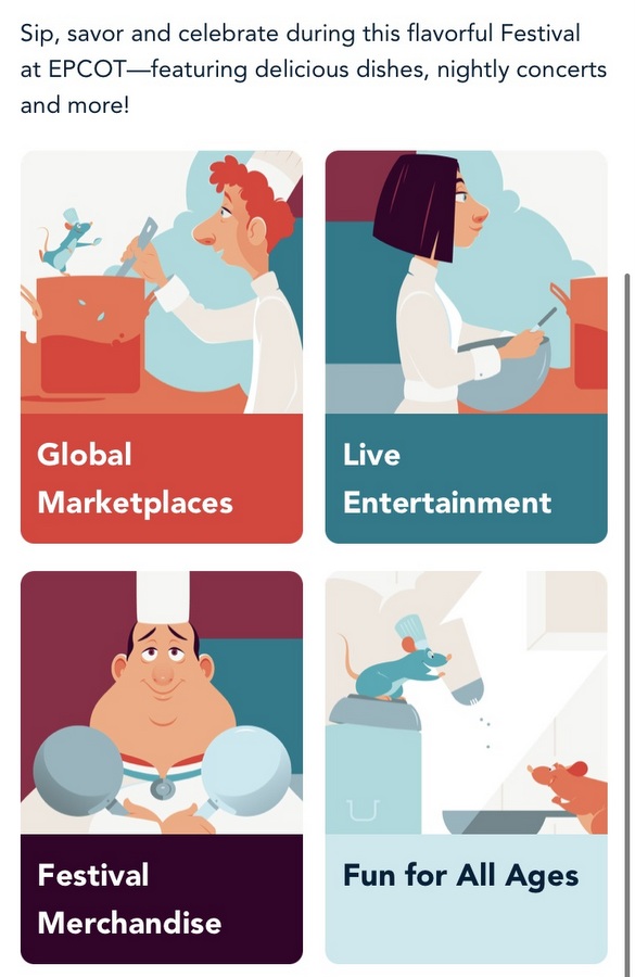 You’ll typically find a Digital Festival Guidebook in the My Disney Experience app for the Festival, too.