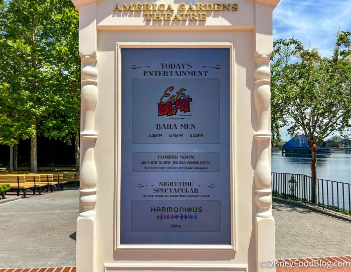 These concerts are free with EPCOT admission, and typically take place three times per evening — at 5:30PM, 6:45PM, and 8PM.