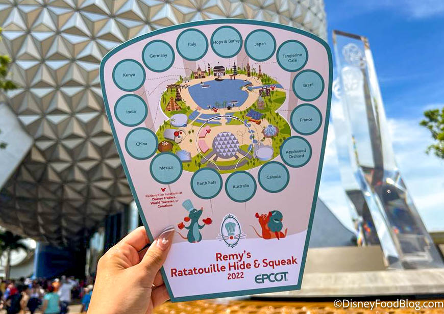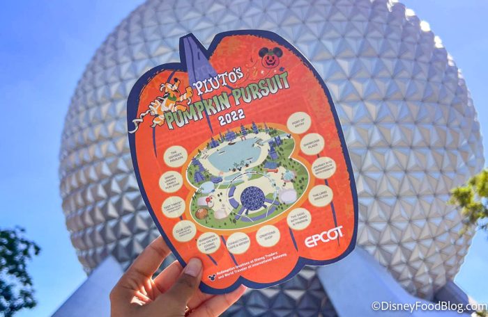 The pursuit works similar to Remy’s Scavenger Hunt, in that guests can purchase a game board and stickers at select merchandise locations (such as Creations Shop, Port of Entry, and World Traveler at the International Gateway). Only THIS time, you’re searching for hidden PUMPKINS decorated based on Disney characters! In 2022, the price was $9.99.