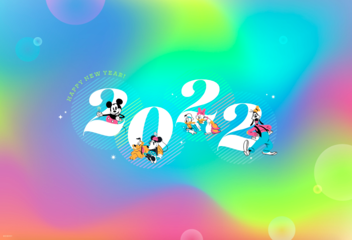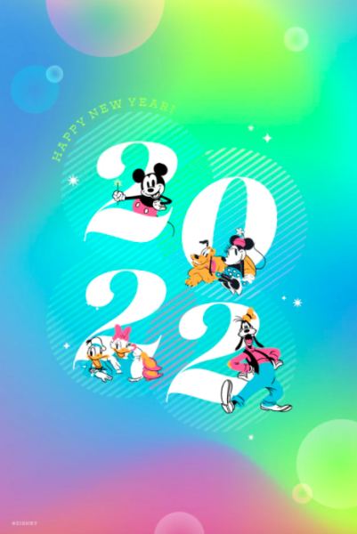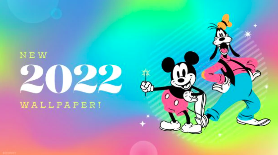 There’s a big “2022” in the middle, with Mickey, Minnie, Pluto, Donald, Daisy, and Goofy. The desktop version is horizontal, and the mobile device version is the same design, but vertical.