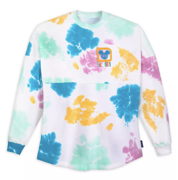 If you visit shopDisney you’ll find three new spirit jersey options, including this Disney World Tie-Dye Spirit Jersey featuring a colorful blue, yellow, pink, and green tie-dye print. There’s a puffy ink Disney World logo on the front…