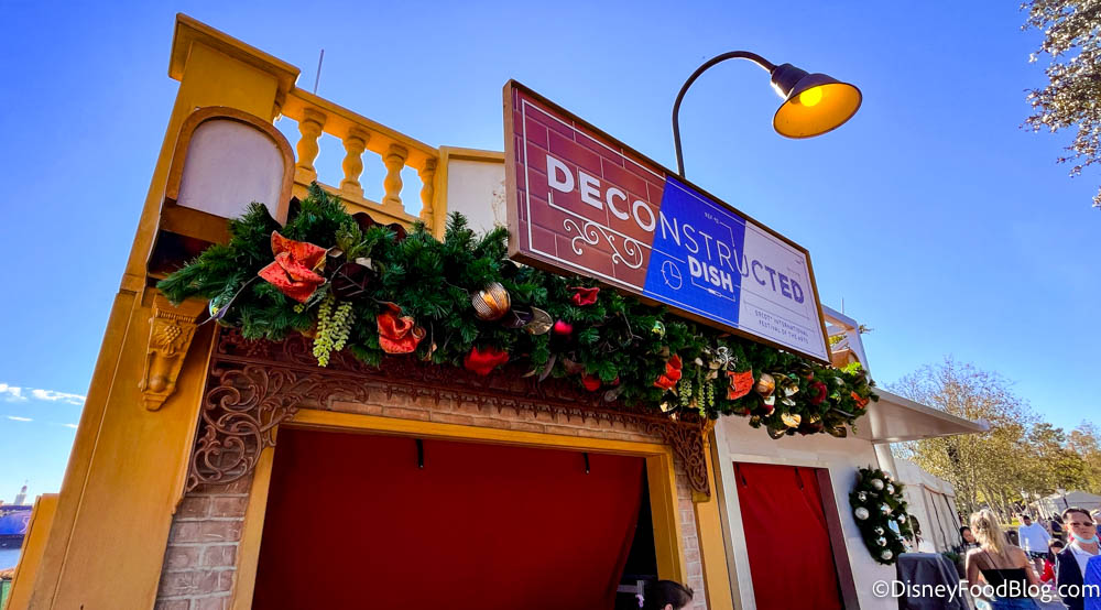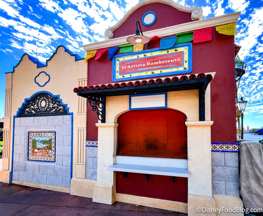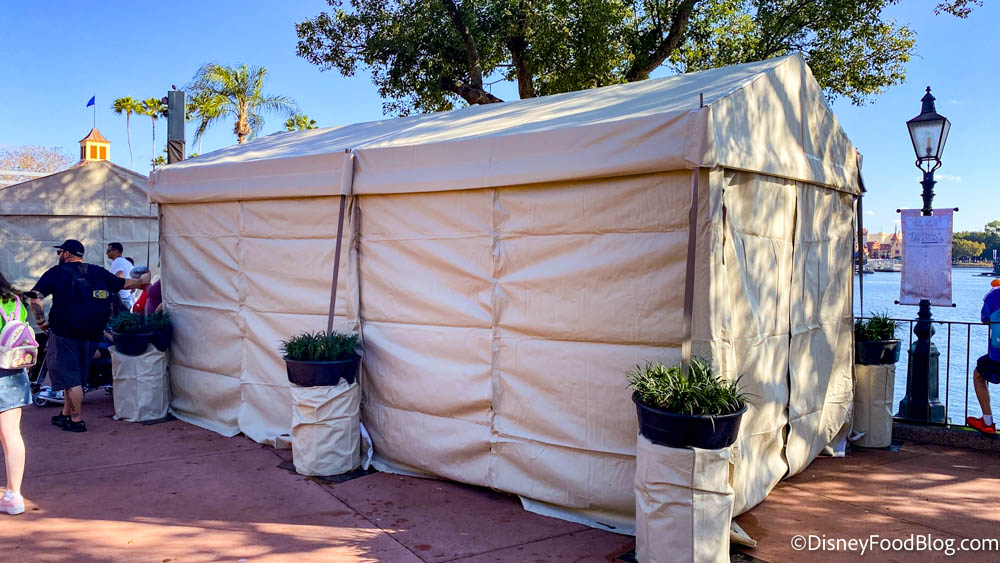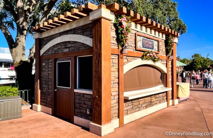 We also spotted Pastoral Palate getting ready to celebrate EPCOT’s Festival of the Arts (though it looks like they aren’t quite ready to part with their holiday wreath). Last year, this booth was called Cuisine Classique, but it looks like the menu will be just about the same as it was in 2021!