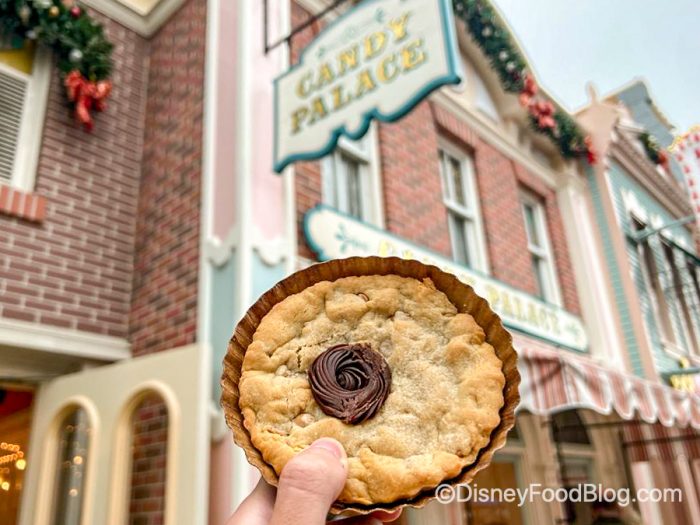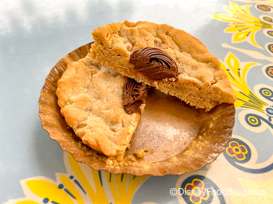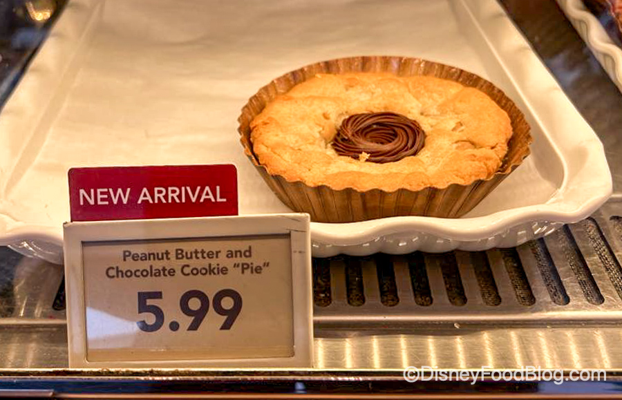 We previously shared some photos of brand NEW cookie and brownie pies available at Candy Palace in Disneyland Park in California, but recently we got the chance to try one for ourselves. Introducing the new Peanut Butter and Chocolate Cookie Pie from Candy Palace! If you’re a Num Num Cookie stan with a soft spot for peanut butter, then you’re going to want to try this cookie!