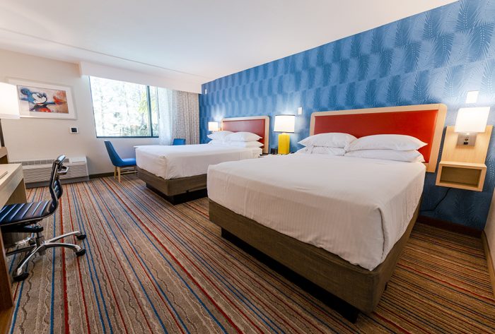 And, while you’ll be about an 8-minute walk away from the parks, you’ll still feel like you’re on a Disney vacation thanks to subtle Disney decorations and artwork throughout the buildings and rooms. Plus, if you want to make your stay even more special, they have a variety of suites that are themed after Disney attractions and movies like Pirates of the Caribbean.
