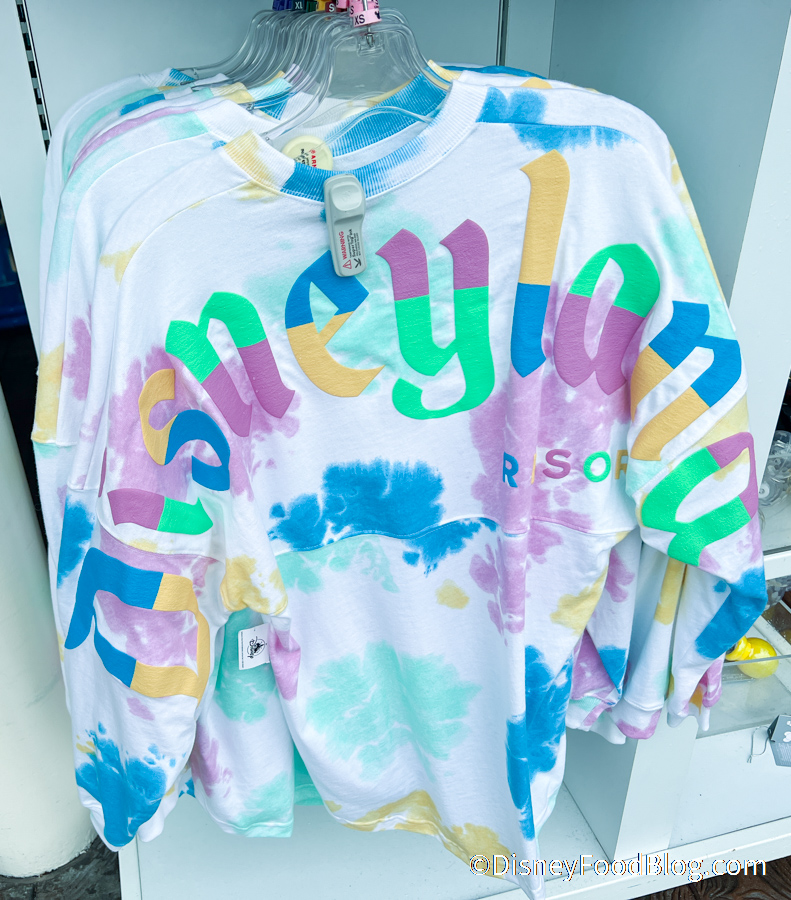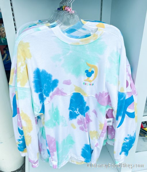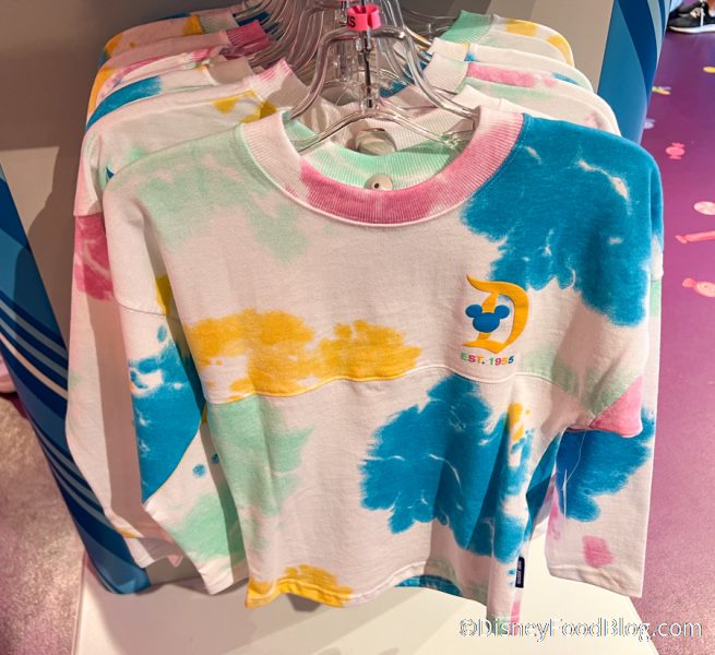We found a super vibrant Tie-Dye Disneyland Spirit Jersey. The front has the “D” logo…