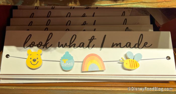 Excuse us while we think about where we can hang this charming little “Look What I Made” Pooh Sign.