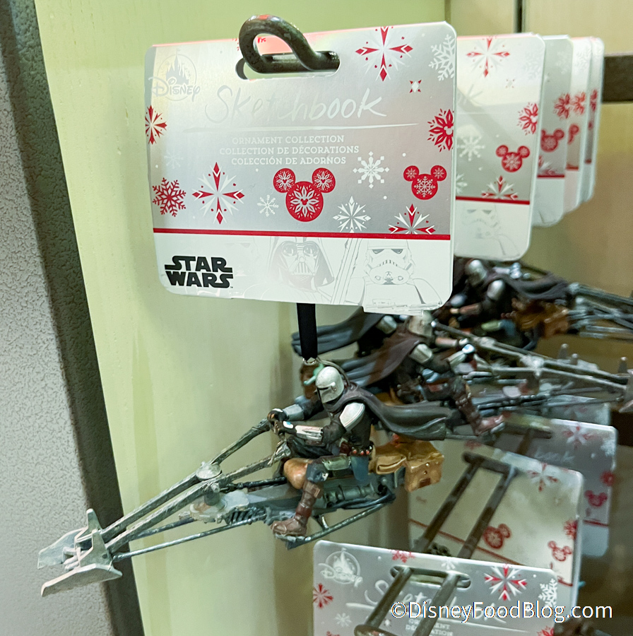 Fans of The Mandalorian will want this Ornament that features Mando on a Speeder Bike for $22.99.
