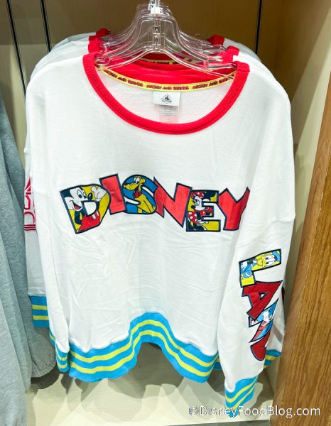 We spotted some new merchandise in the Retro Disneyland Collection, including a very colorful Disneyland Sweatshirt for $54.99…