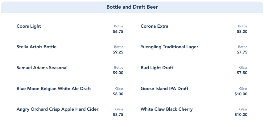 As far as drinks go, a non-alcoholic, non-specialty drink is included in the price of the Harvest Feast. But if you wanted a little something extra, there are a few specialty drink options…