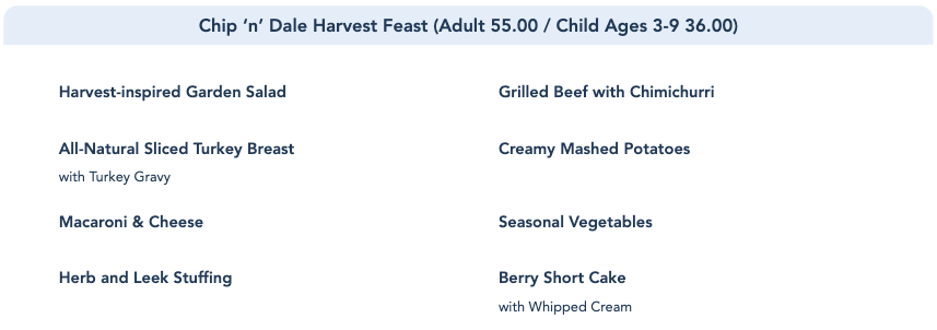 This is one of our favorite character meals in Disney World, but we have a hard time recommending it over the other delicious options in EPCOT. The $55 price tag for Adults and $36 for kids is pretty typical of a character meal, but you can get some other great food options elsewhere in the parks. (For reference, the most expensive steak at Le Cellier Steakhouse costs $59.) So it really depends on your preferences and priorities in EPCOT! If you love characters and Thanksgiving food, there isn’t a better option out there. But if you want to try some unique and interesting options, you’ll have plenty to choose from in World Showcase.