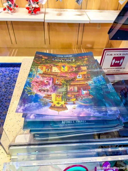 If you’re looking for some free fun at Disney Springs, Once Upon A Toy has an Encanto Activity Book available at the register! This isn’t an abnormal occurrence — Disney likes to do little activity books for their latest movies.