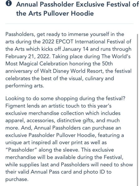 Disney loves doling out exclusive merchandise options to guests (look how cute this MagicBand is!) and the 2022 EPCOT Festival of the Arts Passholder Exclusive Hoodie makes a new addition to the exclusive club.