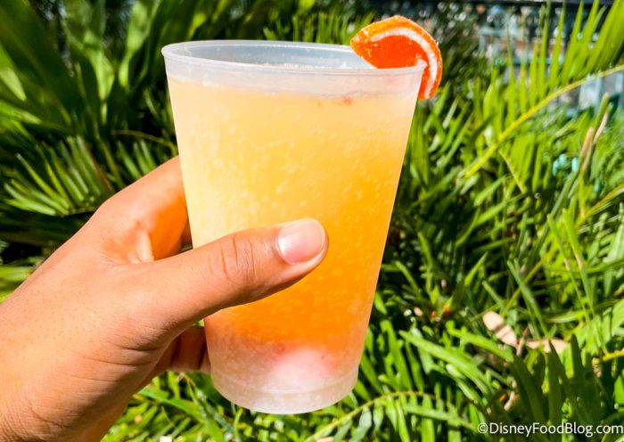 Isn’t she pretty? The bright colors definitely give us summer vibes, which might be exactly what guests are looking for if they’ve escaped to Orlando in mid-January. The orange gelato isn’t mixed into the drink. Rather, there’s a full scoop of it plopped inside, which makes this more of a float! We thought this drink was really tasty. There wasn’t a strong Rosé flavor because there were so many other flavors mixed in.