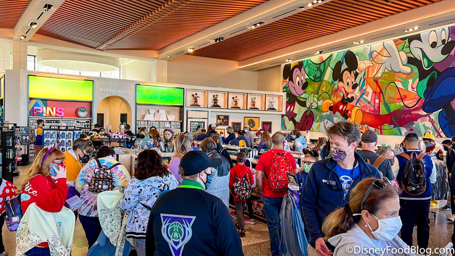 At the Creations Shop, we found quite the crowd shopping for merchandise. This is the perfect time to take advantage of the Mobile Checkout feature in the My Disney Experience app, because it was bananas in here.