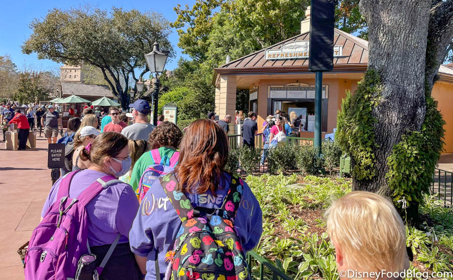 As we’ve been making our way around the park to eat all the snacks available, we’ve had to wait in quite a few lines. The crowds arrived early this morning, and we were already seeing guests fill the park during Early Theme Park Entry.