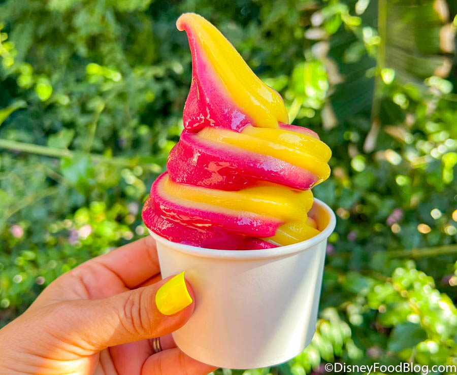 The cherry didn’t have quite the same texture and consistency as the pineapple Dole Whip, so there was a slight difference when taking a scoop of both. However, the flavors blended really well together, with the sweet and the tart.