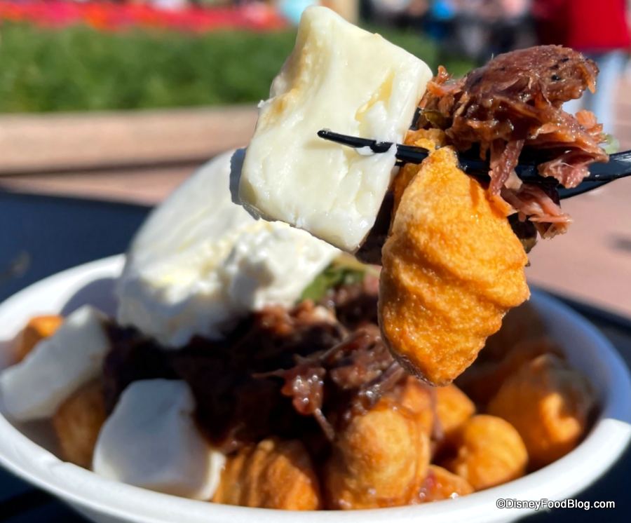 Gnocchi Poutine with red wine-braised beef, cheese curds, basil, and burrata 👀 (Refreshment Port) #ArtfulEPCOT pic.twitter.com/a6OnsJ9cEj