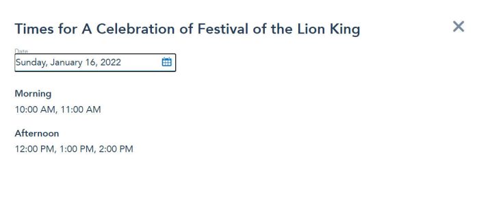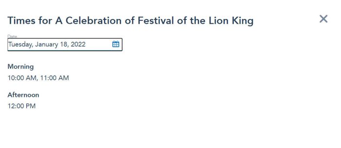 When we looked at the Disney World website for showtimes of A Celebration of The Festival of the Lion King at Disney’s Animal Kingdom, we noticed that today’s performance schedule had gone down to four scheduled performances.