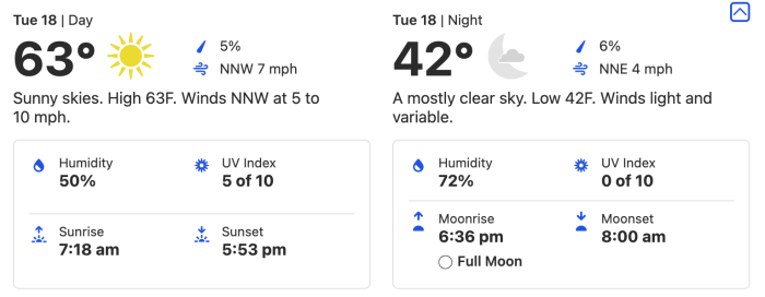 On Tuesday, January 18th, it looks like more of the same weather. Keep in mind that those low 60s can be deceivingly cool — especially if you aren’t prepared!