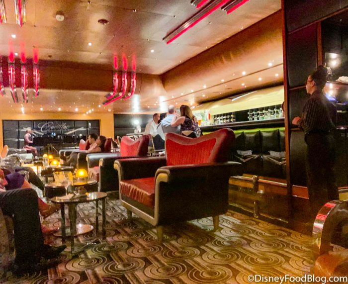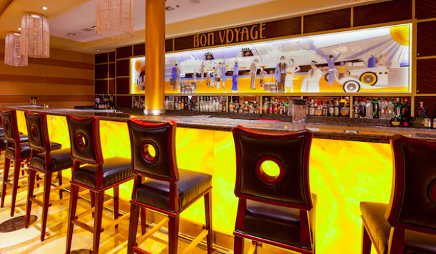 Bon Voyage (also found on the Disney Fantasy; adults only): This bar is inspired by the art deco era. You can grab cocktails, coffee, juices, and soda from the bar.